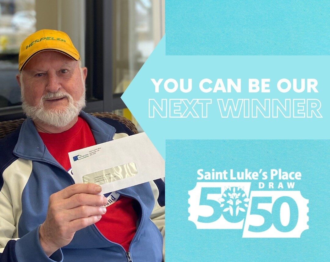 Saint Luke’s Place is excited to offer an online 50/50 draw, with proceeds supporting a wide range of initiatives across our Campus of Care—including redevelopment, resident programs, equipment upgrades, and more. Every ticket purchased helps us continue providing compassionate, high-quality care to seniors in our community.